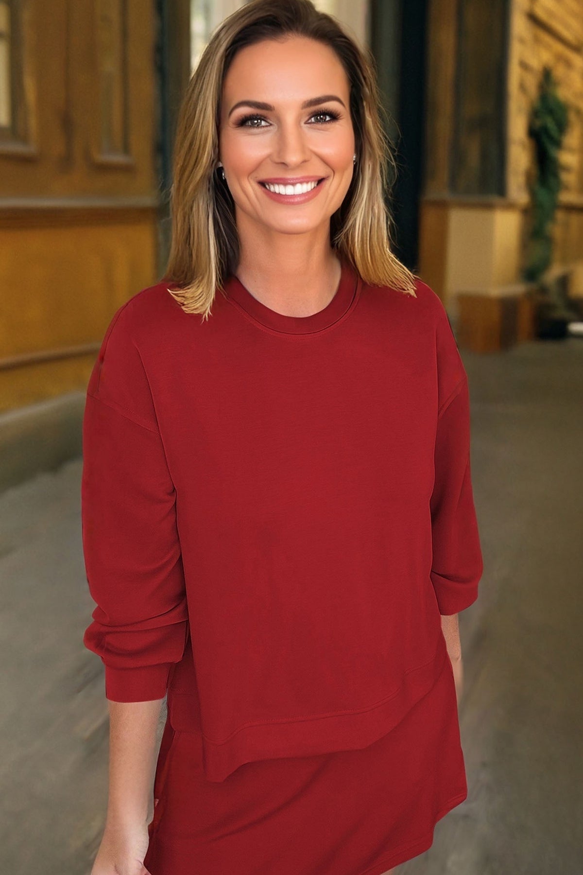 Step into cozy-chic perfection with The Luxe Lounge Cranberry Set. This two-piece look is designed with buttery-soft sweatshirt fabric that feels like a warm hug but looks effortlessly polished.